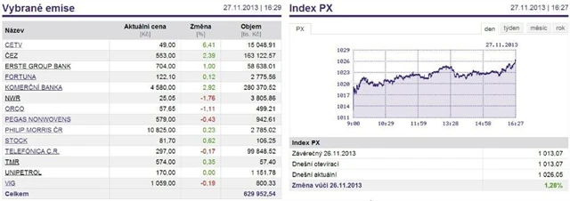 Index PX ve středu zpevnil o 1,28 % na 1 026,05 bodu.
