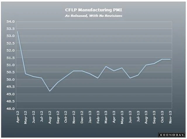 Oficiální index nákupních manažerů ve zpracovatelském sektoru v listopadu vzrostl na 51,4 bodu. Udržel se tak na stejné úrovni jako v říjnu a nechal za sebou odhady trhu, který počítal s hodnotou 51,1 bodu.