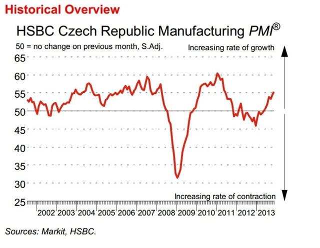 Index nákupních manažerů v České republice ve zpracovatelském sektoru v listopadu dosáhl 2,5letého maxima