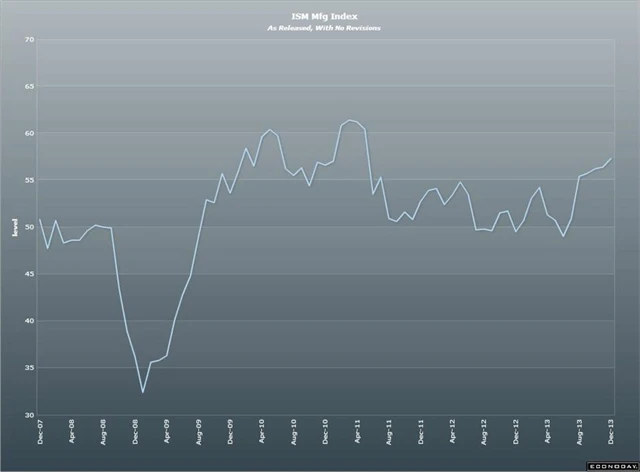 Index průmyslové aktivity ISM se zvýšil na 57,3 bodu z říjnových 56,4 bodu a byl nejvýše od dubna 2011. Ukazatel zůstává od června nad hranicí 50 bodů, která odděluje růst aktivity od jejího poklesu.