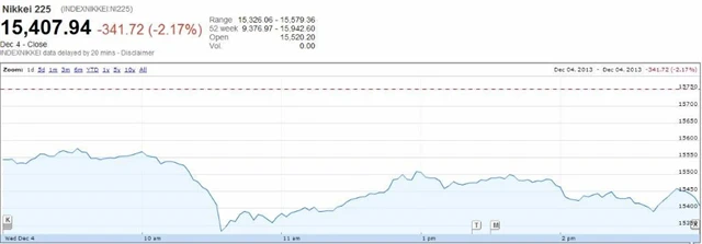 Nikkei 225 ztratil 2,2 % a neudržel tak šestiletá maxima. Akcie společnosti Toyota Motor, největší asijské automobilky, spadly o 1,7 %. Dařilo se jihokorejským společnostem ze sektoru obrany po zprávě, že Čang Sŏng-tchäk, strýc severokorejského lídra Kim Čong-un pravděpodobně odejde z funkce viceprezidenta Národní obranné komise.