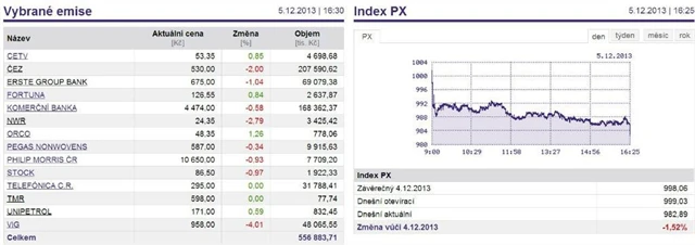 Index PX ve čtvrtek odepsal 1,52 % na 982,89 bodu.