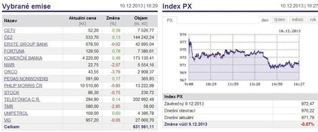 Index PX v úterý odepsal 0,07 % na 971,79 bodu.