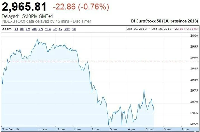 Britský FTSE 100 klesl o 0,55 %, francouzský CAC 40 o 1,04 % a německý DAX o 0,88 %. Regionální Stoxx Europe 600 ztrácel kolem půl procenta a všechny jeho sektory zakončily pod nulou - lehce v mínusu se pohyboval finanční sektor, pojišťovny a mediální společnosti, více než procento naopak odepisovaly automobilky a technologický sektor. Stoxx Europe 600 prozatím za prosinec ztrácí kolem 3 %.