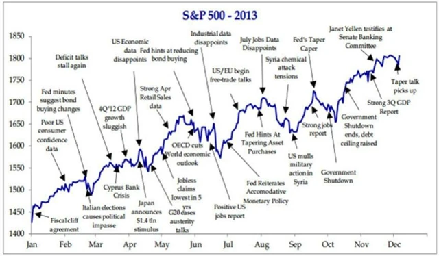 Pro rok 2013 na burzách byla charakteristická dvě hesla - "nebojujte s Fedem" a "vyšplhejte po zdi obav".