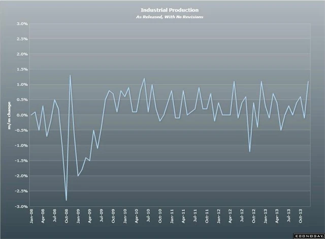 Průmyslová výroba ve Spojených státech vzrostla v listopadu mnohem více, než se čekalo. Analytici vyhlíželi růst o 0,6 %, produkce překvapila zlepšením o 1,1 % meziměsíčně.