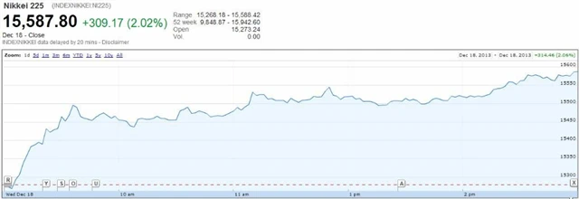 Jihokorejský Kospi si připsal 0,5 %, hongkongský Hang Seng 0,4 % a japonský Nikkei 225 2,02 %. Japonské akcie zaznamenaly růst především po zprávě, že Japonsko oznámilo rekordní deficit obchodní bilance kvůli růstu importů. Jen v reakci na zprávu oslaboval, ve vztahu k dolaru o 0,3 % na úroveň 102,96.