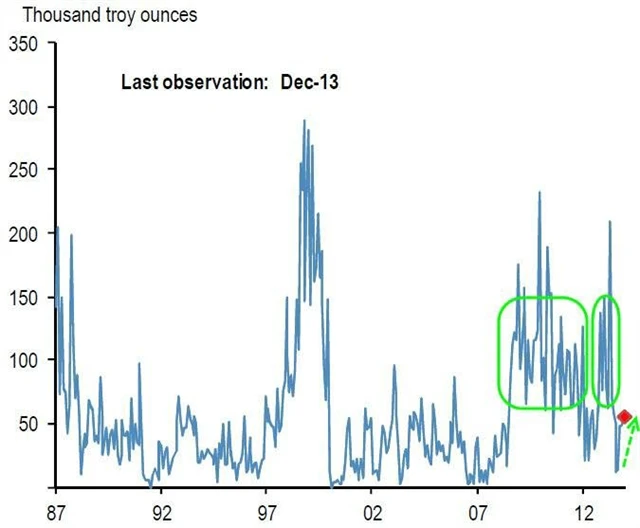 Cena zlata má za sebou nejhorší rok za 30 let. Spekulantů na zlato je nejméně za mnoho let, ETF drží nejméně fyzického zlata o začátku krize, ale o mince je podle statistik JPMorgan opět o něco vyšší zájem než během léta a podzimu, kdy prudce klesl.
