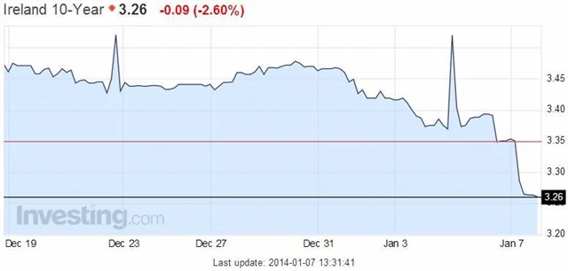 Poptávka po dluhopisech byla vysoká a výnosy z nich klesly nejníže od roku 2006. Výnos desetiletého irského dluhopisu na trhu klesl na 3,27 % a u pětileté obligace klesl takřka na úroveň výnosů britských obligací.