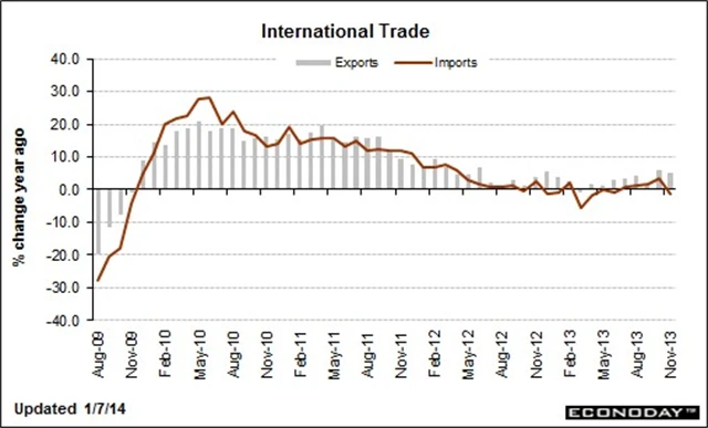Vývoz v listopadu vzrostl o 0,9 % na 194,9 miliardy USD, což je nejvyšší údaj v historii měření. Export rostl již druhý měsíc za sebou, hlavně díky vyššímu vývozu průmyslového a kapitálového zboží a automobilů. Rekordní byl rovněž vývoz ropy.