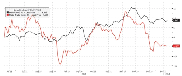 Zychová: My v současnosti úspěšně obchodujeme s IMMOFINANZ, kterou máme postavenou do páru proti GTC, a funguje to velmi dobře.