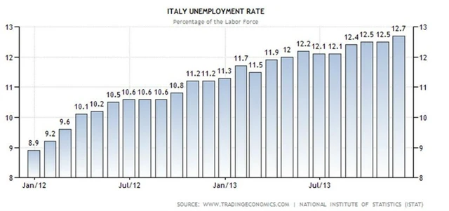 Míra nezaměstnanosti v Itálii v listopadu roste na rekordních 12,7 % Redakce IW8. 1. 2014 | 10:01NezaměstnanostZdroj: BloombergPodívejte se na aktuální videoItálieNezaměstnanostRedakce IW Další články autoraTOP 10 článků týdne: Udýchaný akciový býk, další velký SHORT a výhledy pro zlato a bitcoinOčekávané výsledky světových firem v týdnu od 17. listopadu: NVIDIA, Walmart, Colt CZ GroupTOP 10 článků týdne: Investiční tipy, Moskva vůči Pekingu a AI pokaždé jinak DoporučujemeAI euforie žene index S&P 500 do extrémů. Bank of America radí, kam teď "schovat" penízeDiverzifikace investicPříští vláda shrábne makroekonomický jackpotČeská ekonomikaDvě fakta o velkých akciových propadech, která vás možná překvapíSvětové akcie Aktualitydnes | 3:41Buffett nakoupil akcie Alphabetu a odprodal Apple. Tohle je deset největších pozic v portfoliu Berkshire Hathawaydnes | 1:11Trump reaguje na hrozbu růstu inflace, snižuje cla na dovoz některých potravin14. 11. | 22:30Americké technologické akcie v pátek ožily. V týdenním horizontu ale index Nasdaq Composite oslabil14. 11. | 18:00Evropským akciím se v pátek nedařilo. V týdenním horizontu ale hlavní indexy stouply14. 11. | 16:45Pražská burza v pátek oslabila, proti proudu šly akcie ČEZ, Philip Morris ČR a Kofoly14. 11. | 16:33Zlato v pátek oslabuje, investoři pochybují o prosincovém snížení sazeb Fedu14. 11. | 16:16Akcie StubHub zlevnily o 24 %, firma odmítla zveřejnit výhled na čtvrté čtvrtletí14. 11. | 15:49USA a Švýcarsko se dohodly na snížení cel na 15 procent14. 11. | 15:40Americké akcie v úvodu: Dow -1,02 %, S&P 500 -0,70 %, Nasdaq 100 -0,69 %14. 11. | 15:15Intel přichází o náskok, AMD mu rychle bere klíčové části trhu14. 11. | 14:49Akcie Applied Materials oslabují, přísné americké exportní limity brzdí byznys v Číně14. 11. | 14:25Šéf Walmartu Doug McMillon odejde v lednu do důchoduZobrazit všechny aktuality