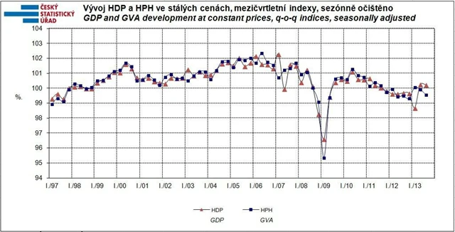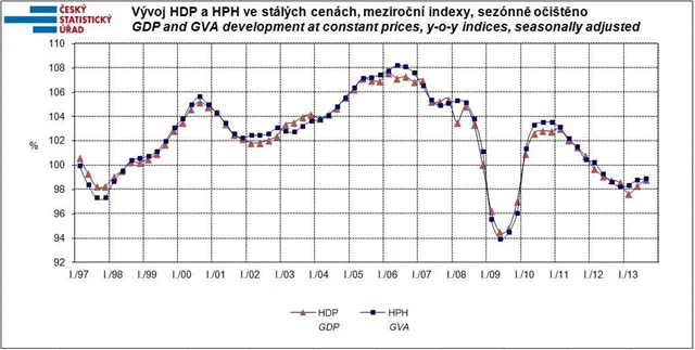 Čtvrteční revize růstu HDP České republiky za třetí kvartál přinesla překvapivé výsledky. Mezikvartálně HDP vzrostl o 0,2 %, ačkoli se původně počítalo s 0,1% poklesem, a meziroční pokles byl také revidován - oproti třetímu čtvrtletí 2012 HDP klesl jen o 1,2 %, původně se počítalo s -1,3 %.