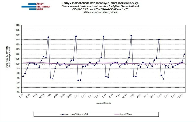 "Lidé se snažili nakoupit zboží dříve, než slabší koruna (způsobená intervencemi ČNB) zvýší ceny. A vývoj maloobchodních cen za listopad potvrzuje, že to stihli, protože ceny poklesly o 1,2 %," říká David Navrátil, hlavní ekonom České spořitelny. "I bez intervencí by se tržby zlepšovaly, ačkoli ne tak rychle. Pointou je, že spotřebitelé přesunuli část nákupů z budoucnosti (první polovina roku 2014) do přítomnosti (poslední čtvrtletí loňského roku). Můžeme se proto těšit na dobrý výsledek HDP ve čtvrtém kvartálu, pokud nedojde k poklesu zásob. Každopádně vývoj tržeb naznačuje, že spotřeba domácností na konci loňského roku zrychlila na růst o 1 až 2 %."
