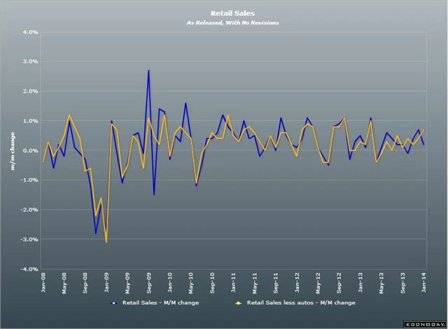Tržby maloobchodníků v prosinci ve Spojených státech vzrostly o 0,2 %, o 0,1 procentního bodu více, než se čekalo. Listopadová data byla revidována níže na +0,4 % z původně hlášených +0,7 %. Bez zahrnutí dopravních prostředků tržby vzrostly o 0,7 % oproti 0,1% růstu v listopadu (revidováno z +0,4 %). Ceny vývozu vzrostly v prosinci o 0,4 % (listopad: +0,1 %), ceny dovozu zůstaly beze změny po 0,9% propadu v listopadu (revidováno z -0,6 %). Meziročně vývoz zlevnil o 1 % a dovoz o 1,3 %.