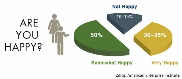 Se svým zaměstnáním je ve Spojených státech podle nejnovějších průzkumů spokojených až 89 % lidí. Zajímavých je však zejména oněch zbylých 11 %, z nichž tvoří nezanedbatelnou část například ženy, které jako odpověď na Brooksovy otázky týkající se zaměstnání uvedly, že by byly mnohem šťastnější, kdyby mohly pracovat na kratší úvazek a ve volném čase se více věnovat rodině. Některé šťastné ženy dokonce přiznaly, že se z tohoto důvodu dobrovolně vzdaly povýšení či příležitosti na zlepšení platových podmínek. To potvrzuje i další zjištění, podle kterého jsou ve většině případů šťastnější lidé žijící v trvalém partnerském vztahu.