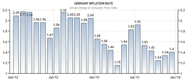 Spotřebitelské ceny v Německu vzrostly loni v průměru o 1,5 %, což byl nejpomalejší růst od roku 2010. Oznámil to ve čtvrtek spolkový statistický úřad. Statistici rovněž potvrdili předběžný údaj za prosinec, kdy meziroční inflace mírně vzrostla na 1,4 % z 1,3 % v listopadu a meziměsíčně byly ceny vyšší o 0,4 %.