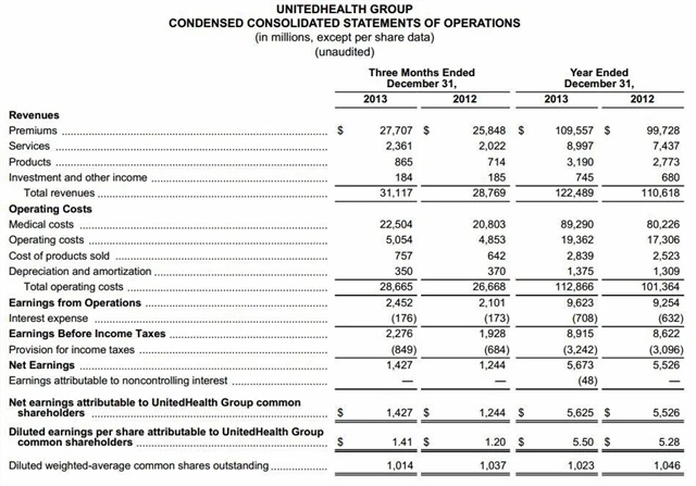 Výsledky UnitedHealth ve 4Q2013: Zisk na akcii 1,41 USD (odhad: 1,41 USD), výnosy 31,117 miliardy USD (odhad: 31,224 miliardy USD) Redakce IW16. 1. 2014 | 12:00Výsledková sezónaZdroj: BloombergVýsledková sezónaRedakce IW Další články autoraTOP 10 článků týdne: Investiční tipy, Moskva vůči Pekingu a AI pokaždé jinakOčekávané výsledky světových firem v týdnu od 10. listopadu: Walt Disney, Cisco Systems, RWE, ČEZJak vydělat na jednorožcích dříve, než se na ně vrhnou investoři na burze DoporučujemeNestihli jste naskočit do zlaté rally? Vůbec není pozdě, říká stratégZlatoRychlé peníze ve velkém opustily zlato a stříbro. Trh se připravuje na další růstZlatoPříští vláda shrábne makroekonomický jackpotČeská ekonomika Aktuality8. 11. | 13:12Pfizer převezme Metseru, dánská Novo Nordisk ze souboje o firmu odstoupila7. 11. | 22:30Technologické tituly v USA v pátek dále srážely obavy z vysokých valuací. Indexy se na směru neshodly, za týden ale všechny výrazně klesly7. 11. | 18:00Evropské akciové indexy v pátek i za celý týden klesly7. 11. | 16:59Zlato směřuje k nejlepší výkonnosti od roku 19797. 11. | 16:45Pražská burza i v pátek stoupla a index PX znovu vylepšil zavírací maximum7. 11. | 16:32Společnost Trump Media prohloubila čtvrtletní ztrátu, její náklady prudce rostou7. 11. | 16:16USA: Spotřebitelská nálada se propadla téměř na historické minimum7. 11. | 15:52Šéf Bundesbanky používá umělou inteligenci k analýze tónu svých projevů7. 11. | 15:27Italská banka Intesa Sanpaolo rozšiřuje digitální investiční služby do Belgie a Lucemburska7. 11. | 15:09Propad kryptoměn vymazal téměř všechny letošní zisky7. 11. | 14:47Kanada: Nezaměstnanost v říjnu klesla na 6,9 %7. 11. | 14:38Americké akcie v úvodu: Dow -0,84 %, S&P 500 -1,12 %, Nasdaq Composite -1,89 %Zobrazit všechny aktuality Nejčtenější tento týden1.Nestihli jste naskočit do zlaté rally? Vůbec není pozdě, říká stratég2.Rychlé peníze ve velkém opustily zlato a stříbro. Trh se připravuje na další růst3.Příští vláda shrábne makroekonomický jackpot4.AI euforie žene index S&P 500 do extrémů. Bank of America radí, kam teď "schovat" peníze5.Dvě fakta o velkých akciových propadech, která vás možná překvapí6.Bank of America varuje: Americké akcie působí zdravě, ale trh uvnitř hnije Sledujte násinvesticniweb.cz14000Investiční web19300LIVE2300Investiční web1000investicni_web500Investicniweb.cz33600