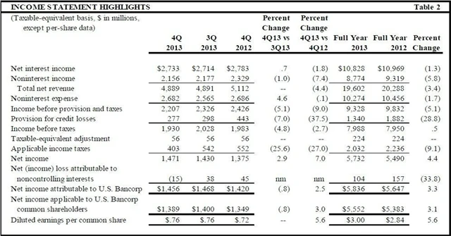Výsledky U.S. Bancorp ve 4Q: Zisk na akcii 0,76 USD (odhad: 0,75 USD), tržby: 4,89 miliardy USD (odhad: 4,88 miliardy USD) Redakce IW22. 1. 2014 | 13:30BankyZdroj: BloombergAktualita pro rok 2026BankyVýsledková sezónaRedakce IW Další články autoraTOP 10 článků týdne: Zapomínání, kontrariánské pohledy a smutný příběh RSBCOčekávané výsledky světových firem v týdnu od 15. prosince: Micron Technology, Nike, Carnivalmmcité v třetím čtvrtletí utržila přes 300 milionů Kč. EBITDA spadl kvůli výkyvům v poptávce DoporučujemeRopa na okraji propasti: JPMorgan varuje před kolapsem cenRopaCo musíte dnes vědět (1. prosince): Unce zlata za 17 250 USDMusíte vědětTady se rodí česká ekonomická katastrofa. Věnujme pozornost dětem, opak je drahýČeská ekonomika Aktuality13. 12. | 17:11Budoucnost podle Čechů: Technologie v bankách vítáme, ale poboček se zatím vzdát nechceme13. 12. | 13:00Evropa sází na obnovitelné zdroje energie. Zajímavou investicí budou bateriová úložiště12. 12. | 22:30Americké akciové indexy týden zakončily poklesem, v pátek pokračoval odliv peněz z technologického odvětví12. 12. | 18:00Evropským akciím se v pátek nedařilo, týden pak pro indexy dopadl smíšeně12. 12. | 16:58Plán Netflixu koupit Warner Bros. naráží na pochybnosti regulátorů12. 12. | 16:45Pražská burza v pátek i za celý týden posílila, index PX je na rekordu12. 12. | 16:32Akcie Gemini posílily v tomto týdnu o 20 % díky nové licenci v USA12. 12. | 16:17Akcie Broadcomu prudce zlevňují, investoři čekali víc z boomu kolem AI12. 12. | 15:59Americký dolar během týdne oslabil a drží se poblíž dvouměsíčních minim12. 12. | 15:43Americké akcie v úvodu: Dow +0,32 %, S&P 500 -0,18 %, Nasdaq 100 -0,43 %12. 12. | 15:16Šéf chicagského Fedu varuje před příliš rychlým snižováním sazeb12. 12. | 14:55Putin má peníze na pokračování války, míní bývalý ruský činitelZobrazit všechny aktuality