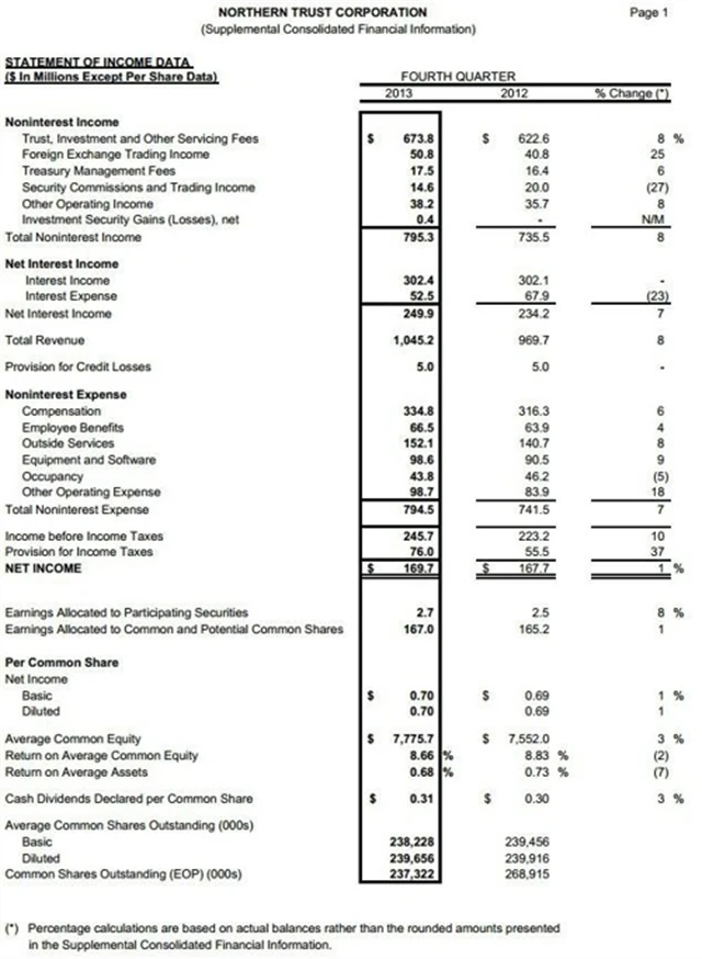Výsledky Northern Trust ve 4Q: Zisk na akcii 0,70 USD v souladu s odhady, tržby 1,05 miliardy USD (odhad: 1,04 miliardy USD)