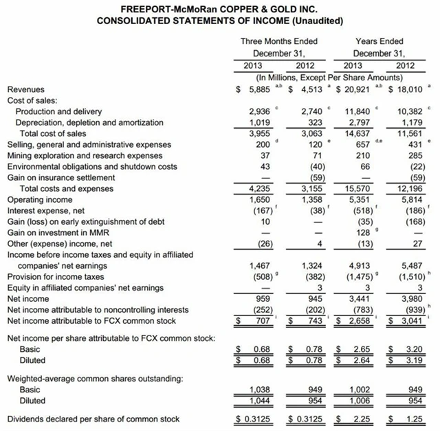 Výsledky Freeport-McMoRan Copper & Gold ve 4Q2013: Zisk na akcii 0,84 USD (odhad: 0,798 USD), výnosy 5,885 miliardy USD (odhad: 6,105 miliardy USD) Redakce IW22. 1. 2014 | 14:00Výsledková sezónaZdroj: BloombergAktualita pro rok 2026Výsledková sezónaRedakce IW Další články autoraTOP 10 článků týdne: Zapomínání, kontrariánské pohledy a smutný příběh RSBCOčekávané výsledky světových firem v týdnu od 15. prosince: Micron Technology, Nike, Carnivalmmcité v třetím čtvrtletí utržila přes 300 milionů Kč. EBITDA spadl kvůli výkyvům v poptávce DoporučujemeRopa na okraji propasti: JPMorgan varuje před kolapsem cenRopa NVIDIA má problém s hotovostí. Neví, kam s níTrhy nejsou kasino: 5 kroků na cestě k úspěšnému investováníPonaučení pro investory Aktualitydnes | 12:53Ceny kabelek Birkin na aukcích klesají navzdory vysokým prodejůmdnes | 12:17Společnost Waymo, kterou vlastní Alphabet, jedná o financování ve výši 15 miliard dolarůdnes | 11:52OpenAI jedná s Amazonem o investici, která by mohla přesáhnout 10 miliard dolarůdnes | 11:18Míra inflace v eurozóně byla revidována směrem dolů na 2,1 %dnes | 10:58Německý index podnikatelské nálady dále klesádnes | 10:29Asijské trhy se ve středu obchodovaly smíšeně. Investoři analyzovali japonské obchodní údajednes | 10:05Inflace ve Spojeném království v listopadu prudce klesla na 3,2 %. Úrokové sazby by se tak před Vánocemi mohly snížitdnes | 9:47Strojní objednávky v Japonsku v říjnu neočekávaně vzrostlydnes | 9:32Pražská burza v úvodu posiluje: Index PX +1,07 %, Doosan Škoda Power +1,15 %, Erste Group Bank +0,46 %, Gevorkyan +1,67 %, Komerční banka +0,61 % dnes | 9:20Evropské akcie v úvodu: STOXX Europe 600 +0,30 %, FTSE 100 +0,95 %, DAX +0,29 %, CAC 40 +0,14 %dnes | 9:07Japonsko zaznamenalo první obchodní přebytek za posledních 5 měsícůdnes | 0:00Co musíte dnes vědět (17. prosince): Ještě bohatší díky IPOZobrazit všechny aktuality