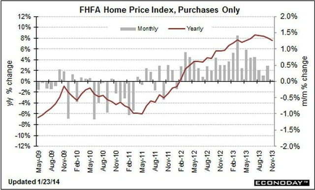 FHFA: Ceny domů ve Spojených státech v listopadu vzrostly meziměsíčně o 0,1 % (říjen: 0,5 %, odhad: 0,4 %)