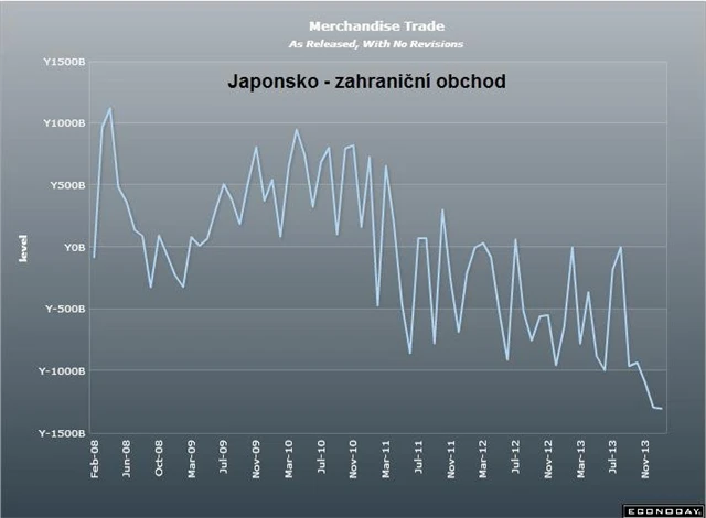 Protideflační politika vlády premiéra Šinzóa Abeho loni srazila kurz jenu k dolaru i euru o více než 20 %. To výrazně zvýšilo příjmy japonských vývozců v domácí měně, na objemu exportu se to ale zatím neprojevuje. Objem vývozu loni klesl o 1,5 % a snižoval se už třetím rokem.