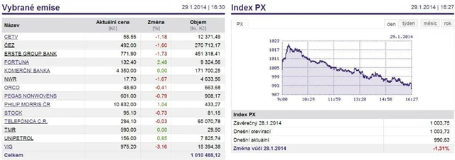 Index PX ve středu odepsal 1,31 % na 990,63 bodu a ocitl se opět pod tisícibodovou hranicí.