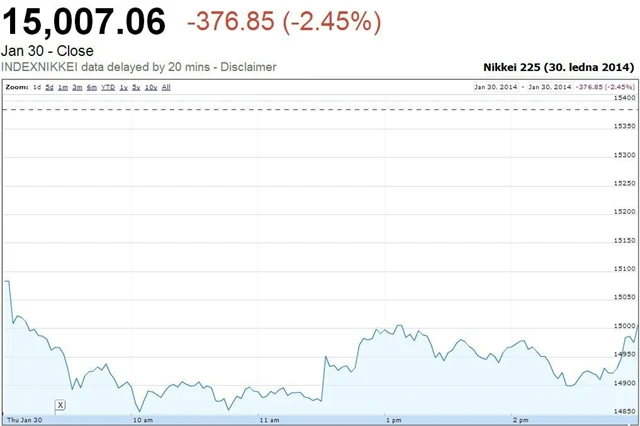 Burzy v Asii následovaly vývoj na amerických trzích a po rozhodnutí Fedu zamířily do červených čísel. Propad japonského indexu Nikkei se zastavil jen těsně nad hranicí 15 tisíc bodů.