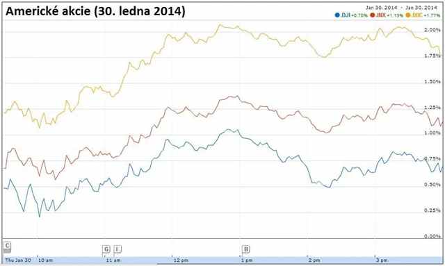 "Investoři ve čtvrtek rezignovali na reflexi vývoje na rozvíjejících se trzích a plně se soustředili na americká a evropská makrodata," říká hlavní investiční stratég společnosti PNC Wealth Management Bill Stone. "Velký význam má také probíhající výsledková sezóna, která vypadá alespoň oproti odhadům analytiků zatraceně dobře."