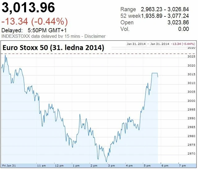 Britský index FTSE 100 oslabil o 0,43 %, německý DAX klesl o 0,71 % a francouzský CAC 40 odepsal 0,34 %. Index Euro Stoxx 50 nakonec v pátek uzavřel se ztrátou 0,44 % na 3 013,96 bodu, za celý týden odepsal 0,47 % a leden zakončil slabší o 2,88 %. Panevropský index Euro Stoxx 600 v lednu stejně jako Euro Stoxx 50 oslabil vůbec poprvé od srpna a za celý měsíc klesl o 1,75 %. Nejvíce v pátek odepisovaly sektory stavebnictví a základních materiálů, pojišťovny a odvětví energetických komodit. Posilovaly naopak akcie maloobchodních prodejců, telekomunikační sektor a odvětví spotřebitelského zboží.
