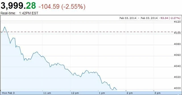 Ztráta dalších více než 100 bodů v pondělí poslala technologický index pod psychologickou hladinu 4 tisíc bodů. S&P 500 i Nasdaq ztrácely přes 2 %.