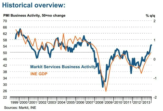 Sektor služeb ve Španělsku zahájil rok 2014 úspěšně. Aktivita v sektoru i nové zakázky dále rostou solidním tempem, poprvé od února 2008 však vzrostla i zaměstnanost a nálada je nelepší od července 2007.