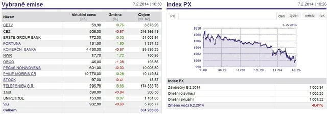 Index PX v páteční seanci odepsal 0,41 % na 1 001,22 bodu.