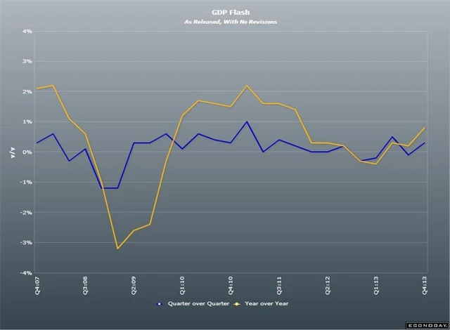 Úřad také přehodnotil směrem nahoru údaje za třetí čtvrtletí. Podle původních čísel hrubý domácí produkt druhé největší ekonomiky v eurozóně ve 3Q2013 klesl o 0,1 %, nyní byl revidován na stagnaci.