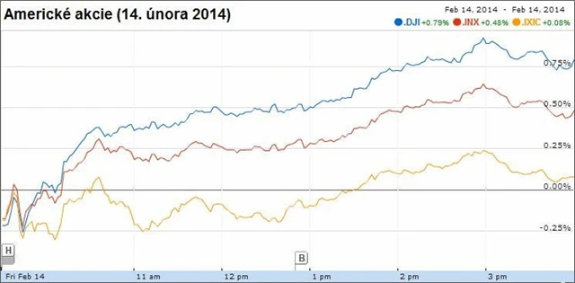 "Na akciový trh se vrací hodně peněz, a to i z Evropy," upozornil David Lutz ze společnosti Stifel Nicolaus. "Část nervozity opadla díky Fedu, konkrétně po úterním vystoupení jeho šéfky Yellenové v Kongresu. Navíc zmizely obavy z dosažení dluhového stropu."