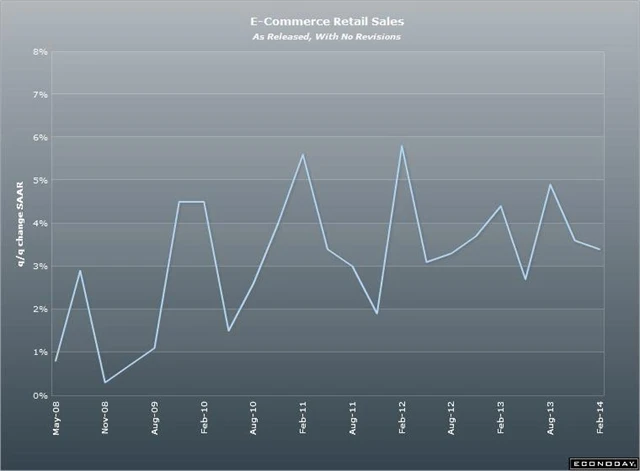 USA: Tržby internetových obchodníků v posledních třech měsících minulého roku vzrostly mezičtvrtletně o 3,4 % (3. čtvrtletí revidováno na +3,5 % z +3,6 %)