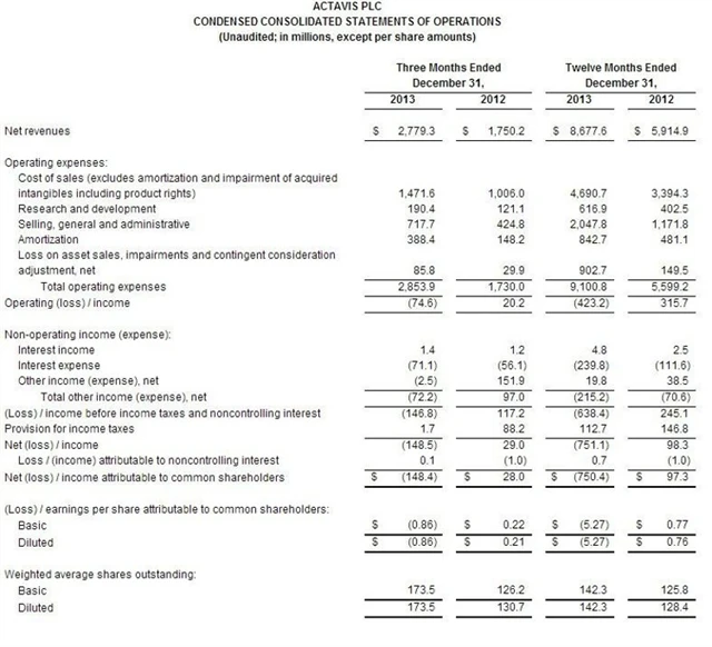 Výsledky Actavis v 4Q2013: Zisk na akcii 3,17 USD (odhad: 3,05 USD), tržby vzrostly o 59 % na 2,779 miliardy USD Redakce IW20. 2. 2014 | 14:09Americké akcieZdroj: BloombergAmerické akcieFarmacieVýsledková sezónaRedakce IW Další články autoraAkciový býk pádí vyspělými trhy. A není to jen americké témaTOP 10 článků týdne: Vize Nvidie, americké akcie a víra ve zlatoOčekávané výsledky světových firem v týdnu od 3. listopadu: McDonald’s, Palantir, Ryanair, BMW DoporučujemeNestihli jste naskočit do zlaté rally? Vůbec není pozdě, říká stratégZlatoRychlé peníze ve velkém opustily zlato a stříbro. Trh se připravuje na další růstZlatoPříští vláda shrábne makroekonomický jackpotČeská ekonomika Aktualitydnes | 2:32CTP potvrdila výhled celoročního zisku, od ledna do září vydělala přes 300 milionů eurdnes | 0:00Co musíte dnes vědět (6. listopadu): Trumpova cla v ohrožení5. 11. | 22:30Americké akciové indexy ve středu zamířily výše díky naději, že by některá Trumpova cla mohla být zrušena5. 11. | 22:15FAA na 40 hlavních letištích v USA kvůli vládnímu shutdownu omezí provoz o 10 % 5. 11. | 22:05Nejvyšší soud USA se zatím staví skepticky k tomu, že by reciproční cla byla zákonná5. 11. | 18:00Evropské akciové indexy v polovině týdne stouply, investoři vyhodnocovali PMI a firemní výsledky5. 11. | 16:55Akcie výrobce paralyzérů Axon Enterprise oslabují po slabších výsledcích5. 11. | 16:45Pražská burza ve středu posílila, index PX je na novém maximu5. 11. | 16:34Akcie Pinterestu zlevnily o 20 % po slabém výhledu na závěr roku5. 11. | 16:16USA: PMI ve službách podle ISM v říjnu vzrostl na 52,4 bodu (odhad: 50,8 bodu, září: 50 bodů)5. 11. | 15:56USA: PMI ve službách podle finálních dat S&P Global v říjnu vzrostl na 54,8 bodu (flash: 55,2 bodu, září: 54,2 bodu)5. 11. | 15:50USA: Kompozitní PMI podle finálních dat S&P Global v říjnu vzrostl na 54,6 bodu (flash: 54,8 bodu, září: 53,9 bodu)Zobrazit všechny aktuality Nejčtenější tento týden1.Nestihli jste naskočit do zlaté rally? Vůbec není pozdě, říká stratég2.Rychlé peníze ve velkém opustily zlato a stříbro. Trh se připravuje na další růst3.Příští vláda shrábne makroekonomický jackpot4.Auto jako služba: Operativní leasing stále více láká domácnosti5.Dvě fakta o velkých akciových propadech, která vás možná překvapí6.Bank of America varuje: Americké akcie působí zdravě, ale trh uvnitř hnije Sledujte násinvesticniweb.cz14000Investiční web19300LIVE2300Investiční web1000investicni_web500Investicniweb.cz33600