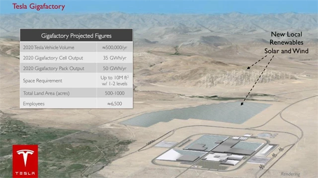 Závod, který automobilka označuje za "giga továrnu", bude dodávat lithium-iontové baterie montážnímu závodu Tesly v kalifornském Fremontu. Závod by měl být schopen do roku 2020 vyrobit baterie pro asi 500 tisíc aut. Letos Tesla plánuje vyrobit asi 35 tisíc vozů.