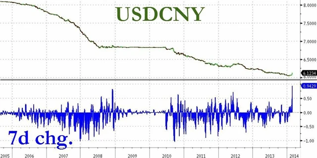 Výrazné oslabení čínského jüanu přišlo pouze několik dní poté, co server Zero Hedge upozornil, že se čínská centrální banka během jediného týdne zbavila 0,95 % svých devizových rezerv v čínských jüanech, což lze vysvětlit její snahou o kontrolu měnového kurzu. Objem finančních rezerv, které banka v národní měně poslala na trh, byl největší od roku 1994. People's Bank of China (PBC) se tak podle analytiků zřejmě naplno zapojila do "měnových válek".