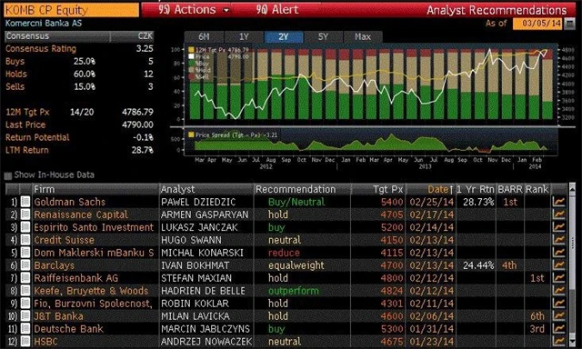 Bank of America Merril Lynch snižuje doporučení na akcie Komerční banky z "kupovat" na "underperform"
