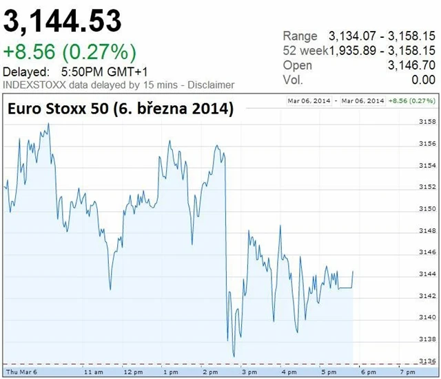 Evropské akcie ve čtvrtek mírně zdražily. Investory potěšil nečekaně silný růst objednávek německých průmyslových podniků a také potvrzení nízkých úrokových sazeb od Bank of England a ECB. Vrásky na tváři jim naopak přidělal další překotný vývoj na ukrajinském Krymu, když místopředseda tamní vlády Rustam Těmirgalijev na svém twitterovém účtu oznámil, že krymský parlament odhlasoval připojení oblasti k Rusku.
