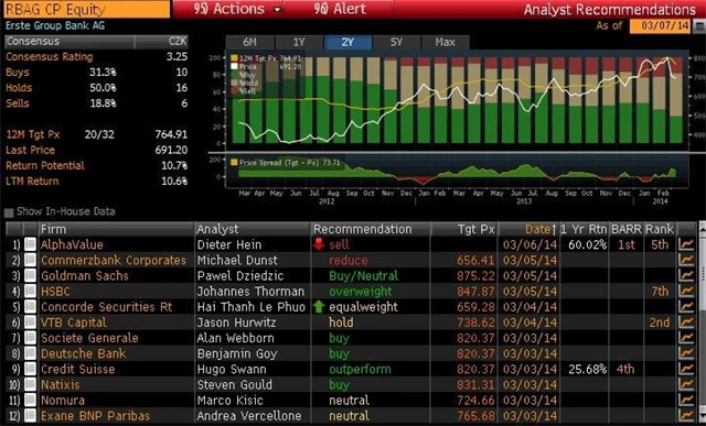 Morgan Stanley snížila doporučení na akcie Erste Group Bank z "overweight" na "equalweight" Redakce IW7. 3. 2014 | 10:24Investiční doporučeníZdroj: BloombergAkcie ČRErste Group BankInvestiční doporučeníRedakce IW Další články autoraTOP 10 článků týdne: Investiční tipy, Moskva vůči Pekingu a AI pokaždé jinakOčekávané výsledky světových firem v týdnu od 10. listopadu: Walt Disney, Cisco Systems, RWE, ČEZJak vydělat na jednorožcích dříve, než se na ně vrhnou investoři na burze DoporučujemeNestihli jste naskočit do zlaté rally? Vůbec není pozdě, říká stratégZlatoRychlé peníze ve velkém opustily zlato a stříbro. Trh se připravuje na další růstZlatoPříští vláda shrábne makroekonomický jackpotČeská ekonomika Aktualitydnes | 1:58Americký Senát je údajně připraven ukončit rekordně dlouhý vládní shutdowndnes | 0:00Co musíte dnes vědět (10. listopadu): Celní dividenda pro Američany9. 11. | 10:13Čínská deflace v říjnu polevila, spotřebitelské ceny znovu rostou8. 11. | 13:12Pfizer převezme Metseru, dánská Novo Nordisk ze souboje o firmu odstoupila7. 11. | 22:30Technologické tituly v USA v pátek dále srážely obavy z vysokých valuací. Indexy se na směru neshodly, za týden ale všechny výrazně klesly7. 11. | 18:00Evropské akciové indexy v pátek i za celý týden klesly7. 11. | 16:59Zlato směřuje k nejlepší výkonnosti od roku 19797. 11. | 16:45Pražská burza i v pátek stoupla a index PX znovu vylepšil zavírací maximum7. 11. | 16:32Společnost Trump Media prohloubila čtvrtletní ztrátu, její náklady prudce rostou7. 11. | 16:16USA: Spotřebitelská nálada se propadla téměř na historické minimum7. 11. | 15:52Šéf Bundesbanky používá umělou inteligenci k analýze tónu svých projevů7. 11. | 15:27Italská banka Intesa Sanpaolo rozšiřuje digitální investiční služby do Belgie a LucemburskaZobrazit všechny aktuality Nejčtenější tento týden1.Nestihli jste naskočit do zlaté rally? Vůbec není pozdě, říká stratég2.Rychlé peníze ve velkém opustily zlato a stříbro. Trh se připravuje na další růst3.Příští vláda shrábne makroekonomický jackpot4.AI euforie žene index S&P 500 do extrémů. Bank of America radí, kam teď "schovat" peníze5.Dvě fakta o velkých akciových propadech, která vás možná překvapí6.Bank of America varuje: Americké akcie působí zdravě, ale trh uvnitř hnije Sledujte násinvesticniweb.cz14000Investiční web19300LIVE2300Investiční web1000investicni_web500Investicniweb.cz33600