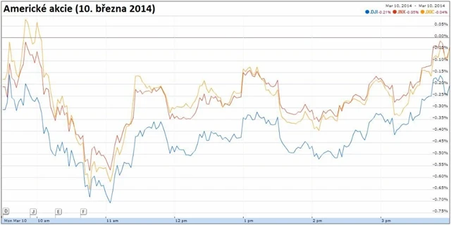 Americké akcie do obchodního týdne vstoupily mírnými ztrátami a přibližně po hodině a půl obchodování odepisovaly hlavní indexy více než půl procenta. Investoři celý den zvažovali nečekaný únorový pokles čínského exportu, který se tamní úředníci snaží zdůvodnit volnem v souvislosti s oslavou nového lunárního roku. Nakonec se ale začaly množit nákupní objednávky a indexy se vrátily do blízkosti nuly.