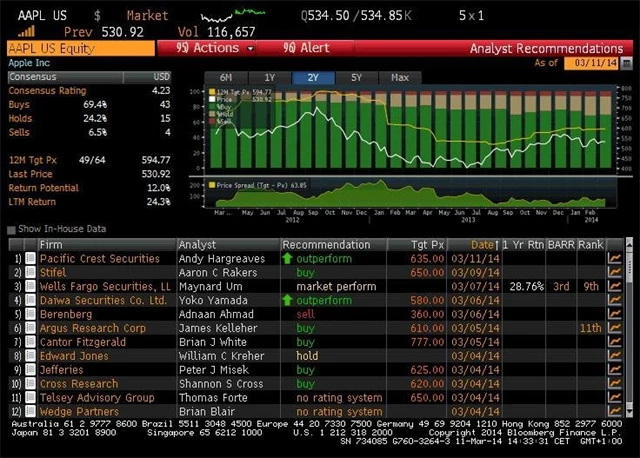 Andy Hargreaves, analytik z Pacific Crest, zvýšil doporučení na akcie Apple a stanovil cílovou cenu na 635 dolarů. Věří totiž, že na podzim Apple přinese na trh iPhone 6 a vydělá na něm více než na předchozím modelu.