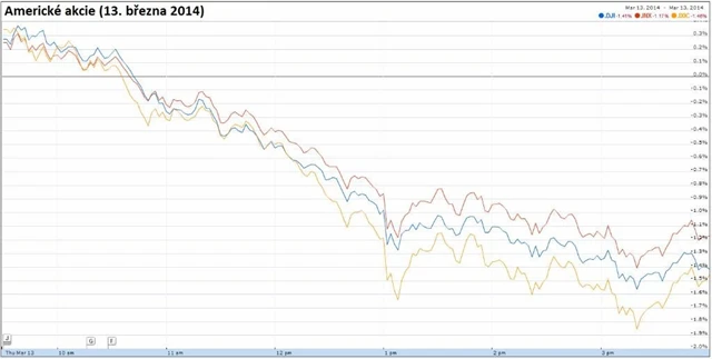 Americké akcie ve čtvrtek zahájily v plusu a index S&P 500 se v jednu chvíli pohyboval necelé čtyři body pod svým historickým maximem. Mezi investory však rychle převážila prodejní nálada a hlavní akciové indexy se přibližně po hodině propadly pod nulu. Lepší než očekávaná americká makordata tak investoři na úkor slabých čísel z čínské ekonomiky přešli takřka bez povšimnutí.