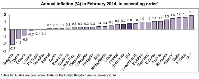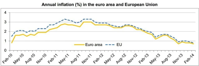 Inflace v eurozóně se už nějakou dobu nachází hluboko pod 2% hranicí, kterou Evropská centrální banka stanovila jako strop cenové stability. Meziroční růst cen v zemích s eurem zpomalil na úroveň 0,7 % poprvé loni v říjnu, což ECB přimělo o měsíc později snížit hlavní úrokovou sazbu na nové rekordní minimum 0,25 %. Šéf ECB Mario Draghi minulý týden řekl, že nebezpečí deflace je nyní "celkem omezené". Čím déle se však bude inflace držet na nízké úrovni, tím bude toto riziko větší, poznamenal.