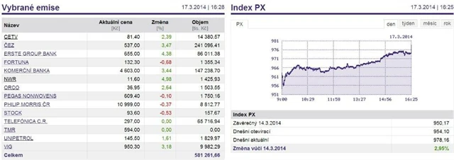 Index PX v pondělí připsal 2,95 % na 978,16 bodu.
