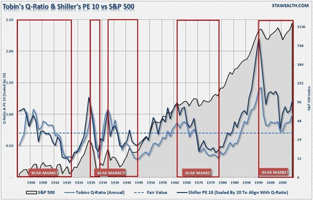Při zahrnutí inflace do valuační analýzy se index S&P 500 jeví jako lehce nadhodnocený. Úrokové míry v 1-2% pásmu odpovídají průměrnému P/E 15. Nominální sazby 3 až 4 % jsou spojeny s průměrným P/E 14,2 (téměř dva body pod současnou úrovní).