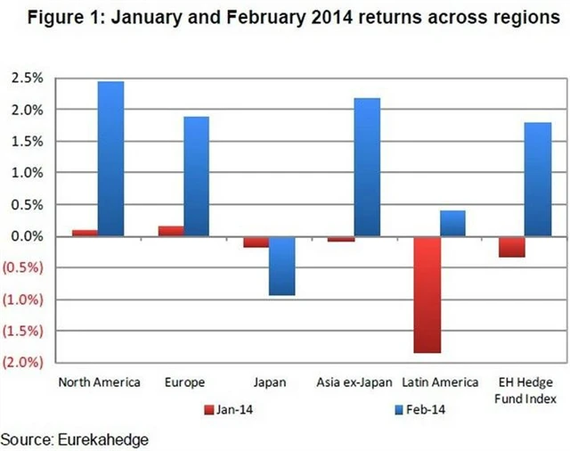 I hedgeové fondy zaměřené na určité regiony si podle Eurekahedge vedou dobře, kromě těch orientovaných na Japonsko. Největší zisk si od začátku roku připsaly fondy zaměřené na region Severní Ameriky (+2,53 %) a Asie bez zahrnutí Japonska (+2,11 %), zatímco fondy orientované na Japonsko a Latinskou Ameriku jsou letos prozatím v mínusu.